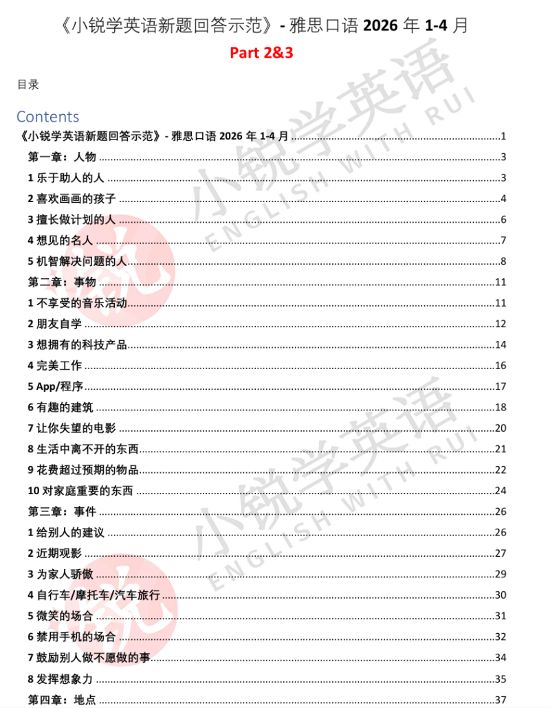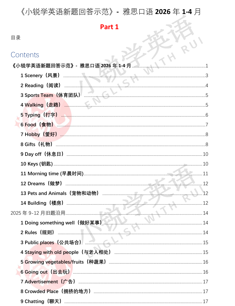 《小锐雅思口语9分备考笔记》IELTS Speaking Ebook(2026年1-4月的新题参考)